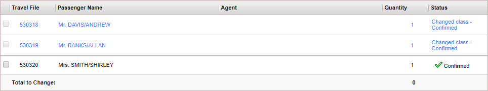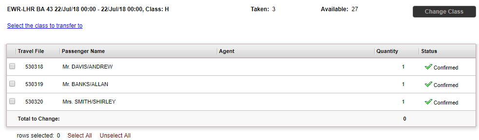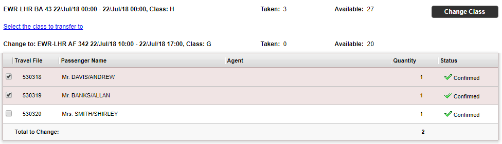 In the Change Flight Reservations page, select the reservations you want to change, and click Change Class.
