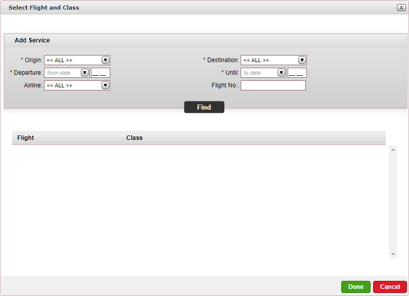 | Mandatory. Departure Until | The flight departure |