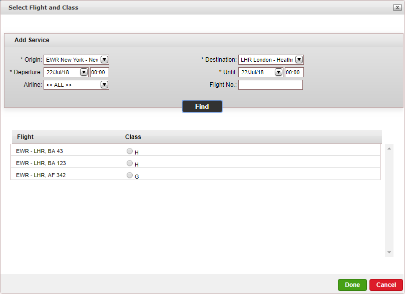 Select the flight and class and click Done.