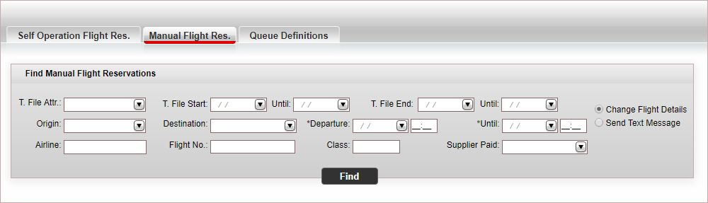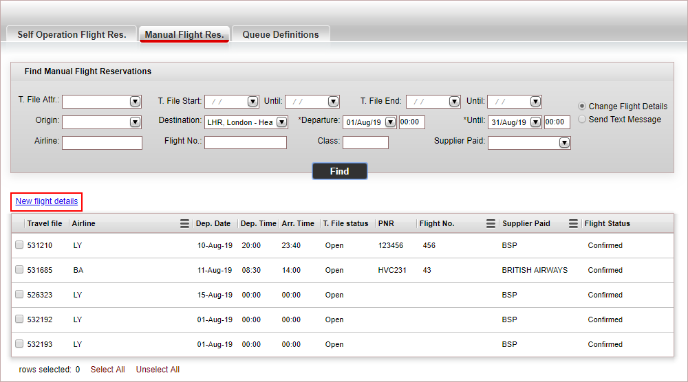 Find the flights with the details you want to change by entering the following parameters:
