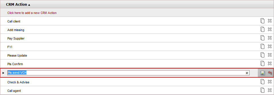 Click the CRM action name you want to change.