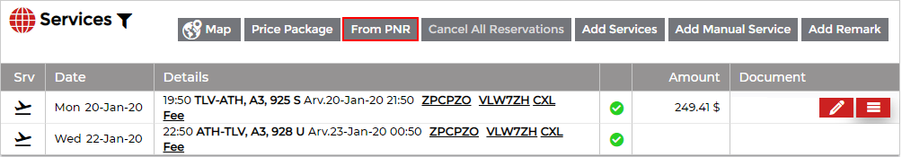 API: The system synchronizes with the GDS to bring the PNR directly into the system through an API using the From PNR tool.