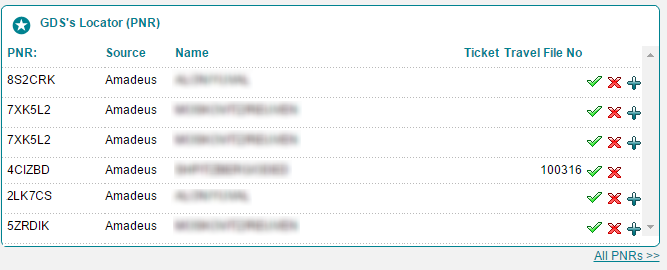 In the Dashboard, you can view all of the PNRs you have opened which have been imported into the system.